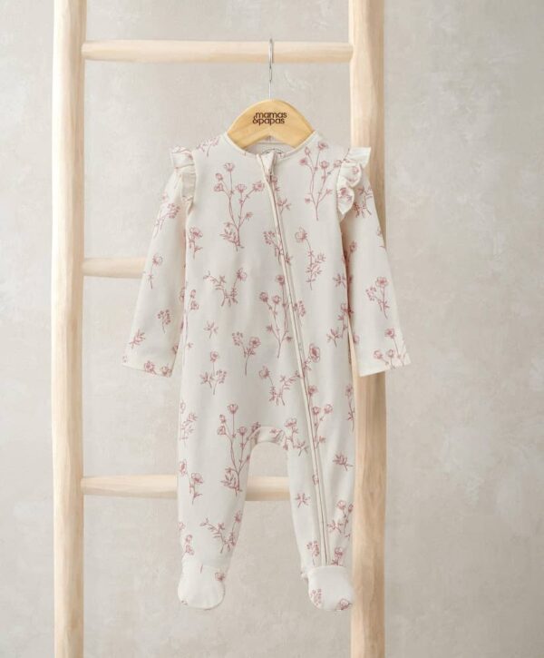Virágos fodros vállú rugdalózó