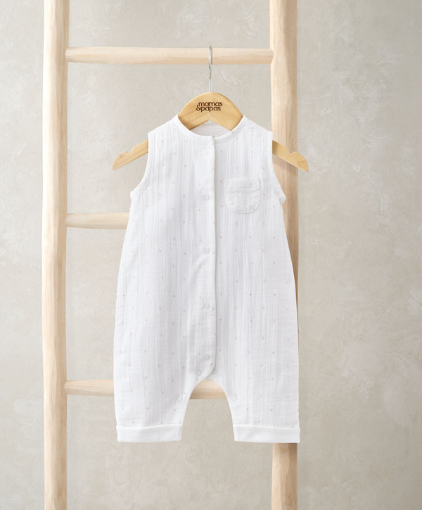 Ujjatlan fehér kezeslábas