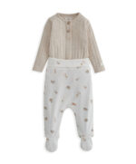 A tökéletes hazatérő kollekció, ez a gyönyörű, időtálló minőségű újszülött kollekció azért készült, hogy gondoskodjon kisbabádról. Gondosan összeválogatott darabok, amelyek tökéletesen illenek egymáshoz, így a mindennapi öltöztetés egyszerű és praktikus. A részletekre fordított figyelem és a jól átgondolt megoldások a szülők számára is könnyen használhatóvá és kezelhetővé teszik ezeket a ruhákat. A Welcome to the World kollekcióban gyengéd anyagok és kényelmes fazonok találkoznak, hogy kisbabád az első heteiben a lehető legkényelmesebben érezze magát. 2 darabos szett, mely egy bodyt és egy hozzáillő leggingset tartalmaz szafarimintával és visszahajtható derékszalaggal a kényelemért.