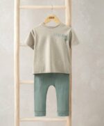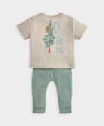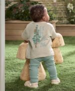 A “Fedezd fel a világot” baba és totyogó kollekció stílusos és kényelmes, prémium alapdarabokat és mindennapi ruhákat tartalmaz, amelyek összehangolhatók vagy külön is viselhetők, így egy könnyen hordható és egyedi megjelenésű ruhatárat biztosítanak. 2 részes póló és leggings szett, stílusos mintázattal a pólón és kényelmes bordázott leggingsgel, visszahajtható mandzsettával a tökéletes illeszkedésért.