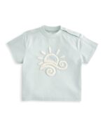 Rövidujjú póló bouclé hímzéssel az elején és nyomtatott részlettel a hátán
