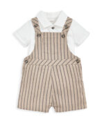 2 részes kantáros és póló szett: Tartalmaz 100% BCI pamut pólót, gallérral. Gombos és patentos rögzítéssel. Kantárosnadrág 100% pamutból. Függőleges csíkokkal és foltzseb részlettel. Rejtett oldalsó gomb és ülep patentnyílással. Állítható pántok gombos rögzítéssel.