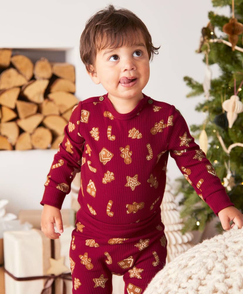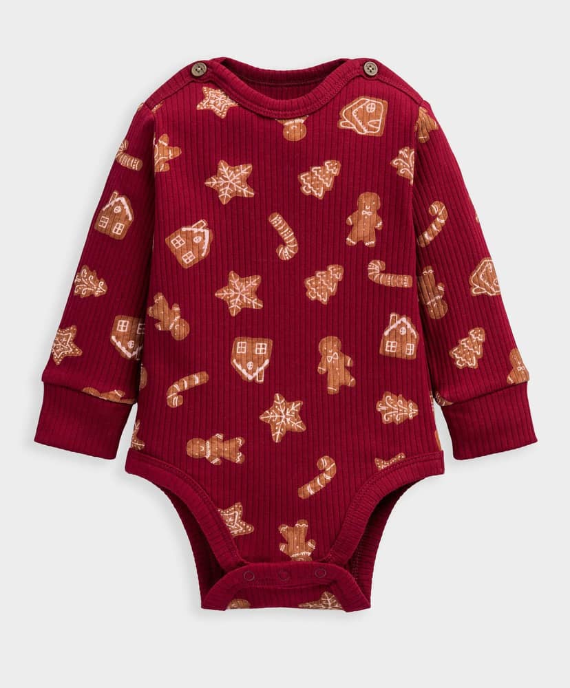 Ez a bájos, ünnepi kétdarabos szett ideális választás a karácsonyi szezon mindennapjaira. A hosszú ujjú body és a hozzáillő jersey leggings vidám mézeskalács figurákkal van díszítve, így garantáltan ünnepi hangulatba hozza a családot. A body praktikus patentos kialakítása megkönnyíti az öltöztetést, a leggings pedig kényelmes, rugalmas derékrésszel és passzés szárakkal gondoskodik a komfortos viseletről.