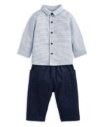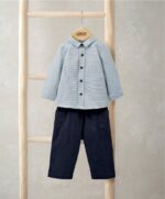 Ez az összehangolt, 2 részes szett tökéletes választás különleges alkalmakra. A klasszikus kockás ing stílusos megjelenést kölcsönöz, míg a hozzáillő kék kordnadrág foltzsebekkel készült, így kényelmes és praktikus viselet is egyben. A 100% pamut anyag gondoskodik a kényelemről, miközben az összeállítás elegáns marad.