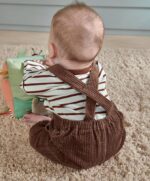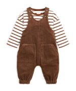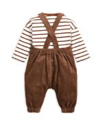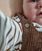 Ez a stílusos, 2 részes szett tökéletes választás a mindennapokra. A puha, kordbársonyból készült kantárosnadrág gombos pántokkal, gumis hátrésszel és foltzsebekkel gondoskodik a kényelemről és a praktikumról. A hozzáillő, hosszúujjú csíkos body hátul és a lábak között patentos kialakítással készült, megkönnyítve az öltöztetést és a pelenkacserét.