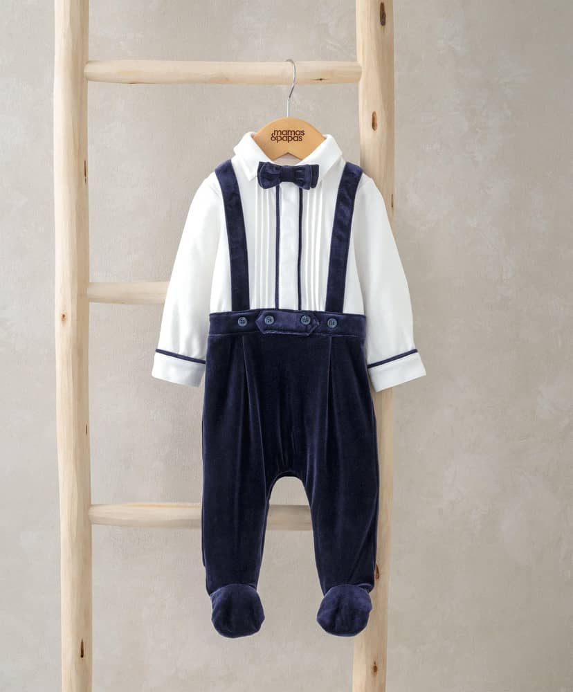 MIÉRT VÁLASSZ ENGEM:Rugalmas derék a biztos illeszkedésértPatentos rögzítés a könnyű pelenkázáshozCsokornyakkendő és díszmellény a valódi szmoking hatásért
