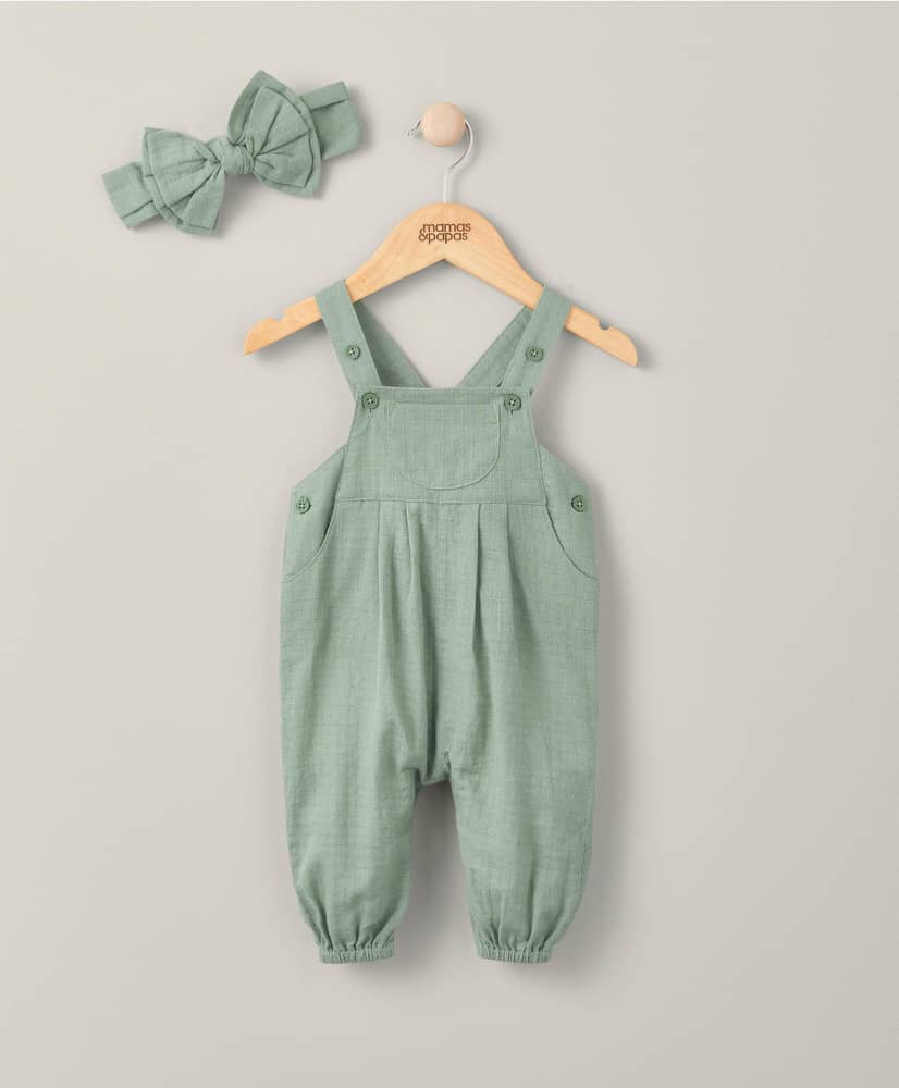 2 részes zöld kantárosnadrág és masnis fejpánt szett