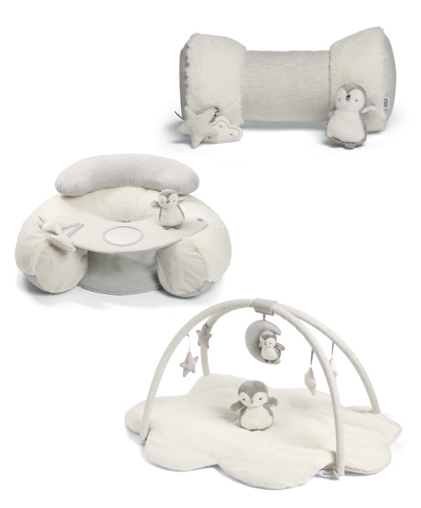 • Sokféle szenzoros élményt nyújt: zenélő függő játék, 4 db csüngő játék, rágóka, hasalós plüss játék, zörgő felület, baba biztonsági tükör, csörgő és hasalós játék