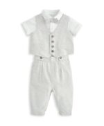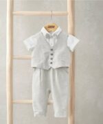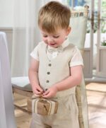 Anyagösszetétel: Ing: 100% pamut; Csokornyakkendő + Mellény + Nadrág: 43% pamut, 25% poliészter, 20% viszkóz, 12% len
