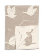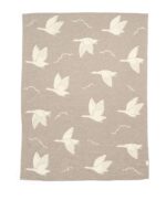 Könnyű, kötött pamut takaró, mokka barna és krém színekben, repülő kiskacsás sziluett mintával. A takaró mindkét oldala használható, ellentétes színekkel. Nagyon puha pamut anyagból készült.