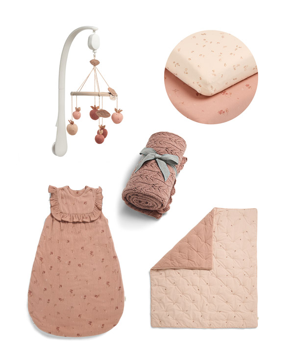 Szofisztikált enteriőr kollekció pihe-puha anyagokkal, gazdag textúrákkal, meseszép, kifinomult virágos és epres mintákkal, meleg sötétrózsaszín árnyalatokkal és földszínekkel. Csalogató enteriőr válogatás, mely könnyedén párosítható egyéb kollekciók darabjaival, a Wildflower kiegészítőkkel egyedivé varázsolható a babaszoba, elegáns külsőt kölcsönöz gyermeked birodalmának.
