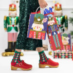 Ünnepi ajándéktasak Diótörő mintával, színes és arany részletekkel. Mérete 18 x 25 x 10.5 cm. Egyedi ajándékcsomagolás az ünnepekre.