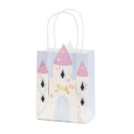 Kastélyt ábrázoló ajándéktasak. Mérete 14x8x20 cm. Szuper díszcsomagolás egy babaváró vagy egy szülinapi buliba.