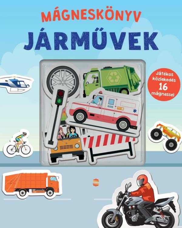 Hova siet a rendőrautó? Mit szállít a targonca? És vajon melyik jármű a leggyorsabb a versenypályán? A 16 színes, képes mágnessel a gyerekek saját történeteket álmodhatnak maguknak a járművek izgalmas világáról. A rövid, iránymutató szövegek segítségével pedig megkereshetik a mágnesek helyét.