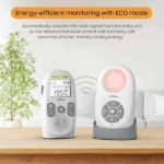 Maradj mindig kapcsolatban kisbabáddal – egyszerűen és biztonságosan! A Bblüv Chillax CB360 audió babaőrző segít, hogy nyugodtan végezhesd otthoni teendőidet, miközben biztos lehetsz abban, hogy azonnal meghallod, ha a babádnak szüksége van rád. A kristálytiszta, zavarmentes hangátvitel minden apró neszt közvetít, legyen szó mocorgásról vagy sírásról. Akár a lakásban, akár a kertben tartózkodsz, a 335 méteres hatótáv mindig stabil kapcsolatot biztosít. Az éjszakai fény megnyugtatja a babát, az altatódalok és hangok pedig segítik az elalvást. A szobahőmérséklet-figyelő gondoskodik arról, hogy mindig ideális környezetet teremthess gyermekednek, míg a LED fényes hangszintjelző vizuális visszajelzést ad a zajokról. Az intelligens ECO mód energiatakarékosan működik, a VOX érzékelés pedig automatikusan aktiválódik, ha a baba hangot ad.