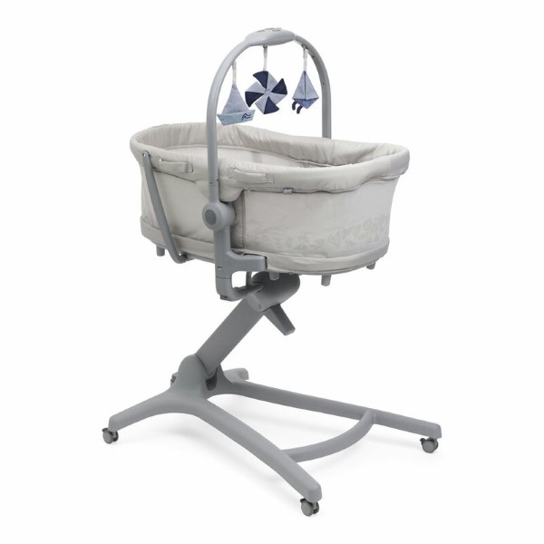 Exkluzív 5az1ben megoldás, amely leegyszerűsíti a napi rutint. Babaágy a magas vázkereten, babaágy a vázkeretről levéve, dönthető pihenőszék, etetőszék, és gyerekasztalhoz szék egyben. Mindössze egy négyzetméternyi helyet foglal el, de az 5 funkcióval akár 3-4 éven át használható, maximum 15 kg testsúlyig. A játékrúd 3 pozícióba állítható, zene-hang funkciója elemmel működik. A háttámla 4 pozícióba állítható.