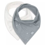 Fedezd fel a Jollein bandana kendőit, melyek tökéletesen védik babád ruháit az étkezések során és fogzási időszak alatt! Ezek a stílusos, praktikus kendők nemcsak, hogy megkönnyítik a mindennapokat, de divatos kiegészítői is lesznek babád öltözékének. A különböző minták és színek lehetővé teszik, hogy tökéletesen illeszkedjenek a baba aktuális ruházatához. Patenttal rögzíthetők, több patenttal rendelkeznek, így a növekvő gyermekhez igazíthatók, hosszú ideig használhatók. A csomag két darab kendőt tartalmaz.