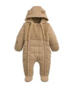 Ez a barna színű, steppelt kord és borg anyagú bundazsák tökéletes választás, ha kisbabádat melegen és kényelmesen szeretnéd tartani a hűvösebb napokon. Teljesen bélelt és vastag töltettel készült a maximális komfortért. A cipzáras kialakítás megkönnyíti az öltöztetést, a beépített kesztyűk melegen tartják a kezeket, a kapucnit pedig aranyos 3D fülek teszik igazán bájossá.