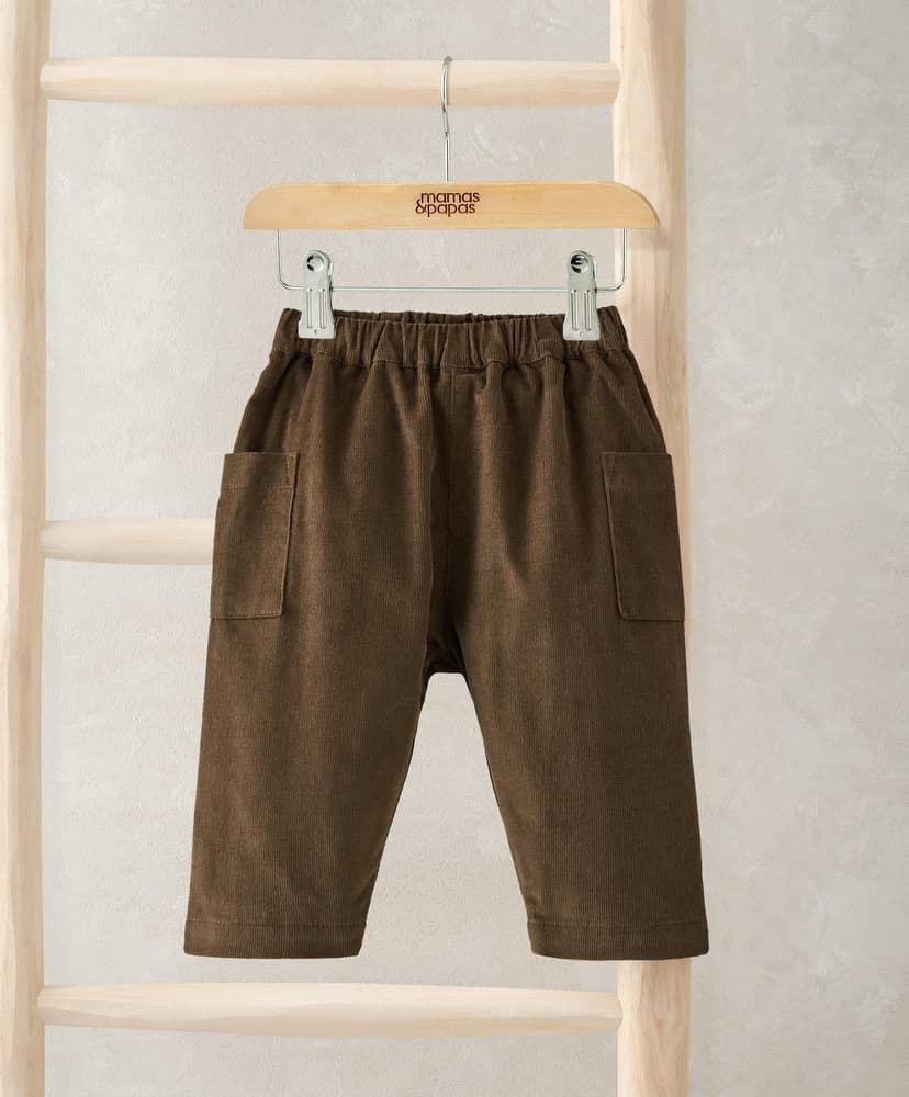 Ez a stílusos barna kordnadrág tökéletes választás kisfelfedezők számára – akár egy vidám napra a szabadban, akár egy elegánsabb alkalomra. A szezonális árnyalatú, puha pamut anyagból készült nadrág kényelmes és könnyen kombinálható más ruhadarabokkal.