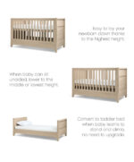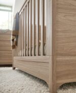 A Barton babaágy három állítható fekvőfelületi magassággal és egyszerűen totyogó ággyá alakítható kivitelben készült, így újszülött kortól egészen körülbelül 4 éves korig használható. A lekerekített sarkok és a puha vonalvezetés barátságos, biztonságos környezetet teremtenek a nyugodt alváshoz. A meleg tölgy árnyalat tökéletesen illik bármilyen enteriőrhöz.