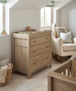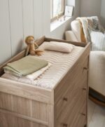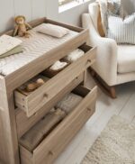 A Barton komód stílusos és praktikus megoldás a babaápolási időszakra és azon túl. Levehető pelenkázórátéttel rendelkezik, így a komód a pelenkás korszak után is tovább használható. A különböző méretű, finoman záródó fiókok ideálisak a babaholmik, ruhák és kiegészítők tárolására. A puha, ívelt lábak és a tölgy szín visszafogott eleganciát kölcsönöznek.