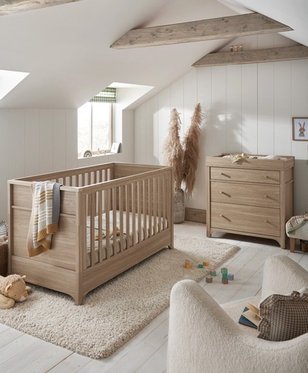 A Barton 2 részes bútorszett egy babaágyból és egy pelenkázó komódból áll, natúr tölgy színben. Letisztult, időtálló dizájnjának és átgondolt kialakításának köszönhetően tökéletes választás a babaszoba megteremtéséhez. Az átalakítható funkcióknak köszönhetően együtt nő a gyermekkel.