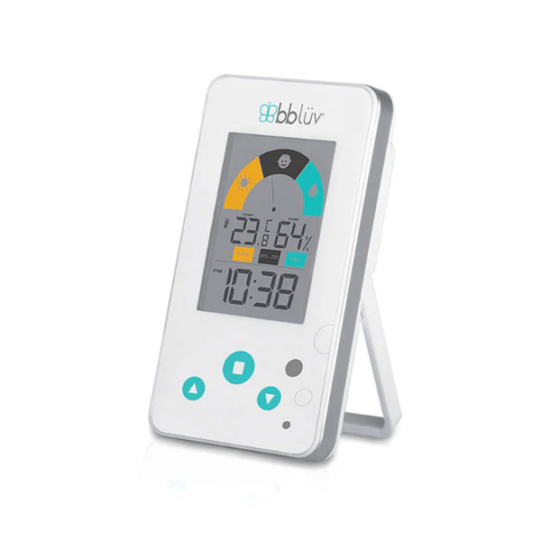 A Bblüv Igrö szobahőmérő és páratartalom mérő ideális lehet a babaszobába,hogy folyamatosan nyomon követhesd a hőmérsékletet és a páratartalmat. Óra és ébresztő is beállítható rajta. Nagy kontrasztú LCD kijelző.