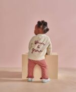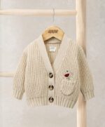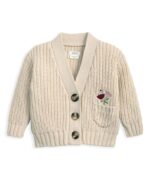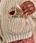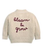 Ez a gyönyörű, hosszúujjú kötött kardigán különleges „bloom & grow” hímzéssel díszített a hátoldalon, elöl pedig praktikus zsebekkel egészül ki. Bordázott ujj- és derékrésze kényelmes illeszkedést biztosít, az elöl végigfutó gombos kialakítás pedig megkönnyíti az öltöztetést. Tökéletes választás a hűvösebb napokra vagy stílusos rétegezéshez.