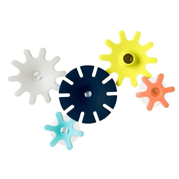 Boon Cogs fürdőjáték: 5 darab fogaskerékből álló vízi játék, melyek tapadókorongosak és össze is kapcsolhatók. 12 hónapos kortól ajánlott.