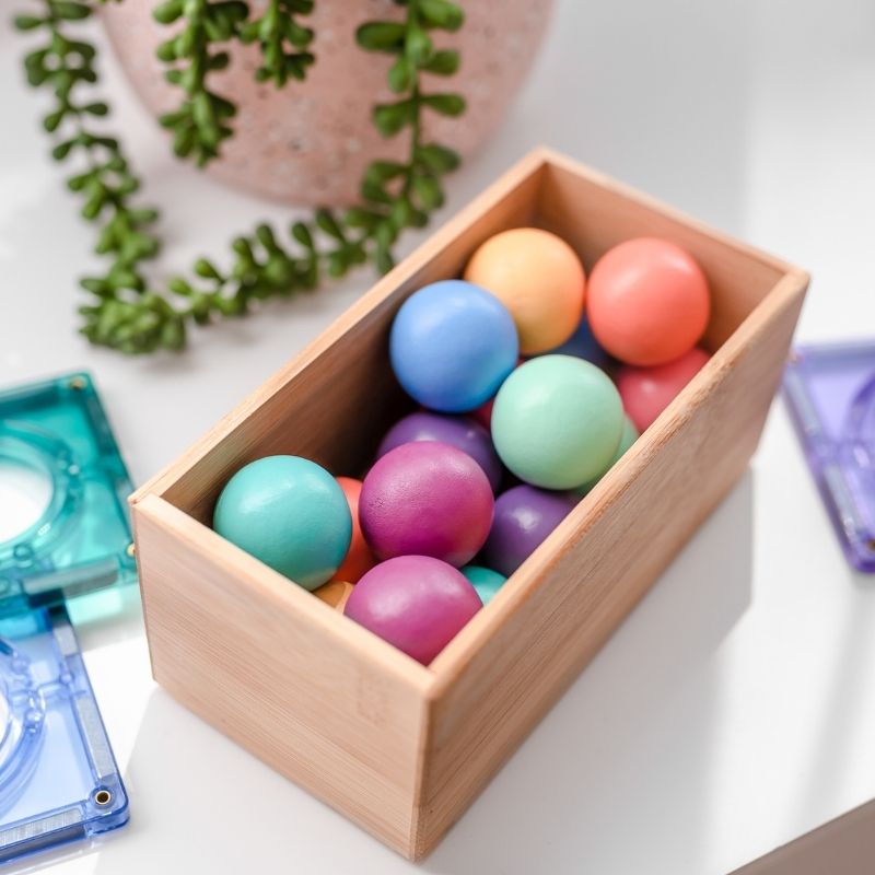 A csomag 16 db fából készült golyót tartalmaz (minden egyedi pasztell színből 2-2 darabot), amelyek kiválóan kiegészítik a Pasztell Golyópálya csomagot, és még több játékélményt kínálnak.