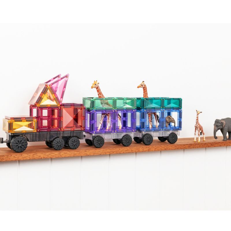 A gyerekek játék közben fedezhetik fel a mágnesesség, a forma és a színek világát, miközben saját teherautókat, vonatokat, repülőket, mentőautókat, tűzoltókat és targoncákat építenek.