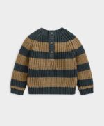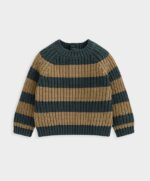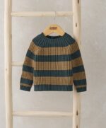 Csíkos kötött kardigán raglán ujjakkal. Bordázott nyakkivágással, szegéllyel és mandzsettával.