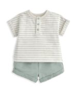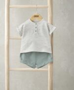 Csíkos póló és bordázott rövidnadrág szett (2 darabos) – Szürke