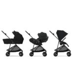 - Travel System – Egy váz négy különböző opcióval. A Melio váz a sima babakocsi ülés mellett kompatibilis a díjnyertes Cybex újszülött autósülésekkel, a szintén megújult Melio mózeskosárral és a Cocoon S puha mózeskosárral.