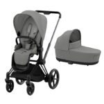 Cybex ePriam babakocsi mózeskosárral – e-Matt Fekete/Mirage Grey 2024 szövettel – Kiállított!