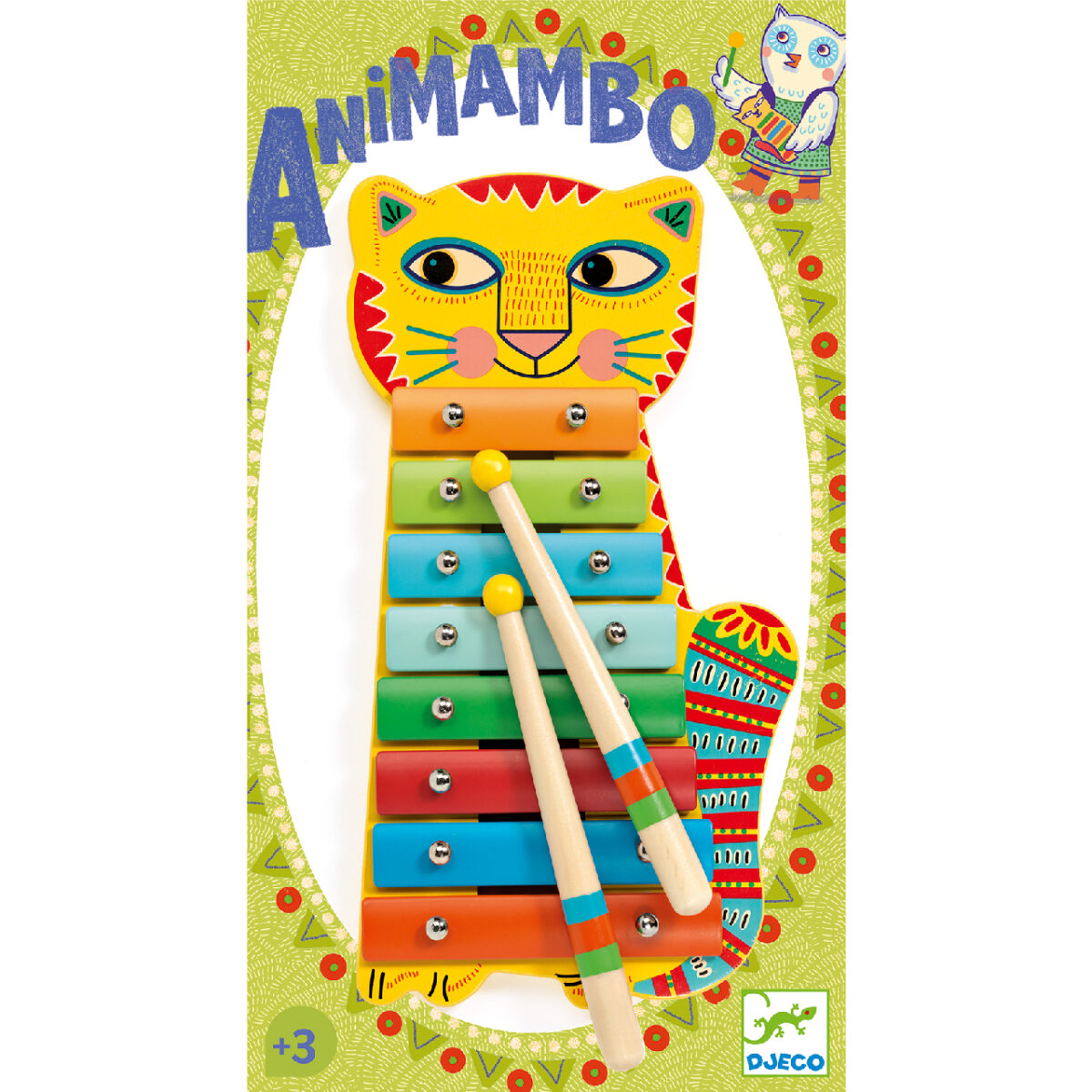Az egyik legnépszerűbb hangszer a gyermekek között a metalofon. A Djeco Animambo hangszer sorozatából a színes, dél-amerikai motívumos, macska formájú metalofon az egyik legkönnyebben tanulható, igazán látványos hangszer ez a metalofon a fém lapokkal és a fa ütőkkel.