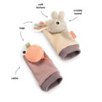 A Done by Deer Csörgős zokni, Celebration, homokszínű játékos módon segíti a baba mozgás- és érzékszervi fejlődését. A csörgő hangok ösztönzik a kicsit, hogy megmozgassa a lábait, miközben fejlődik a koordináció és a testtudat. Puha anyagának köszönhetően kényelmes viselet, amely játék közben is kellemes érzést nyújt. Ideális választás a felfedezés első időszakához.