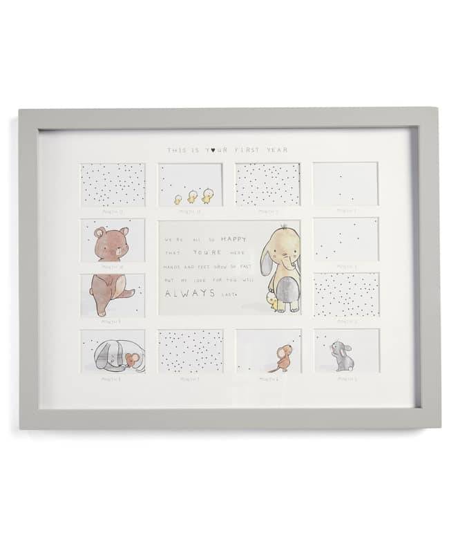 A Mamas & Papas Always Love You kollekcióját olyan gyönyörűen megalkotott ajándékok, emléktárgyak alkotják, amik emlékezetessé tesznek majd minden fontos mérföldkövet. Az Első évem képkeretbe beletehetők az első év emlékezetes pillanatai.
