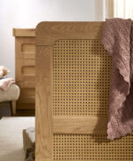 Az Esna babaágy újszülött kortól egészen kisgyermekévekig használható, köszönhetően a három fokozatban állítható fekvőfelületnek. Az ágy rácsos oldalait védősínekkel látták el, melyek egyrészt segítséget nyújtanak babádnak a fogzás idején, másrészt megelőzik a bútor sérülését. A kollekció jellegzetes dizájnelemei – a meleg fa tónusok, a rattan hatás és a finoman ívelt részletek – mind megtalálhatók ezen a különleges darabon.