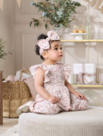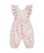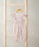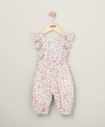 Lány kantáros nadrág teljes felületén virágmintával, fodros részlettel: Derékvonal varrással enyhe gyűjtési hatással. Térfogatos lábrésszel. Állítható hátsó pántok 2 gombbal a derékpánt belső részén a kényelmes, legjobb illeszkedésért. 100% könnyű szőtt pamutból, 100% pamut béléssel készült.