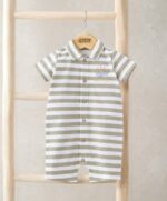 Ez a csíkos, rövidujjú fiú napozó tökéletes választás nyaraláshoz és napfényes napokra.