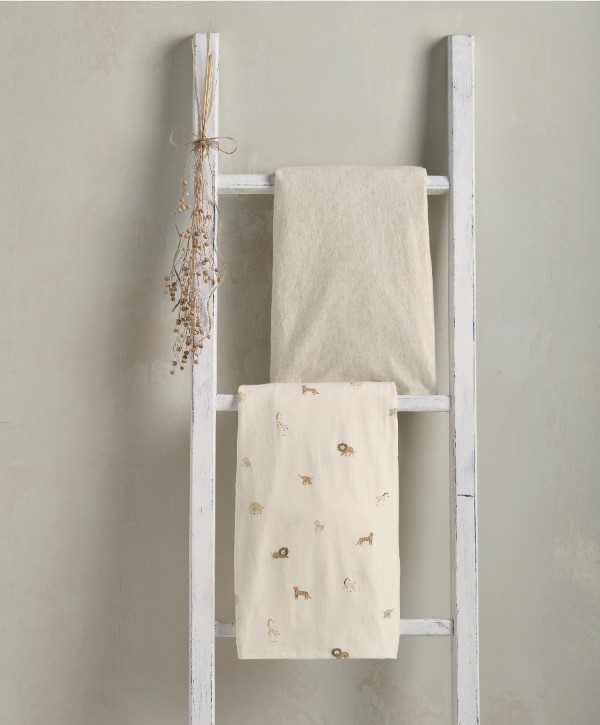 Egy parányi szafari minta, a nagy füves területek inspirálta zöld, homokszínű és lágyabb rózsaszín árnyalatok és az elbűvölő vadon élő állatok egyedülálló kombinációja ez a kollekció. Az eltérő textúrák – úgy, mint a szuperpuha jersey pamut halszálka mintásan steppelve és a könnyed bordás kötésminta – kellemes tapintást és kifinomult érzést kölcsönöznek, miközben a színpaletta kellően naturális, így az egyes darabok bármilyen babaszobába szuperül passzolnak.