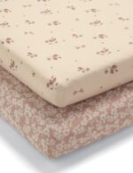 Praktikus 2 darabos szuperpuha jersey pamutból készült gumis lepedő csomag a standard méretű kiságy matracokhoz méretezve. Gyengédek a baba érzékeny bőréhez, jól szellőznek, kényelmesek. Kétféle dizájn egy csomagban: mindkettő apró bogyós gyümölcsöket-terméseket ábrázol.
