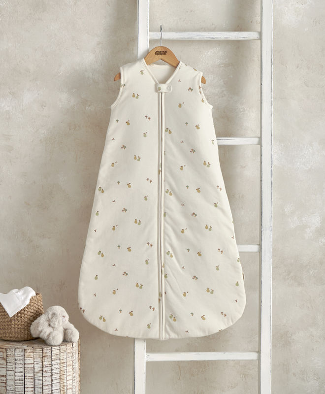 Az Orchard hálózsák finom körtékkel és erdei gombákkal díszített mintája természetes zsálya és földszínekben pompázik, krémszínű alapra nyomva – igazi megnyugtató alvótárs minden kis természetbarát számára. 100% pamut anyaga kíméletes a baba érzékeny bőréhez, így kellemesen puha viselet az éjszaka során.