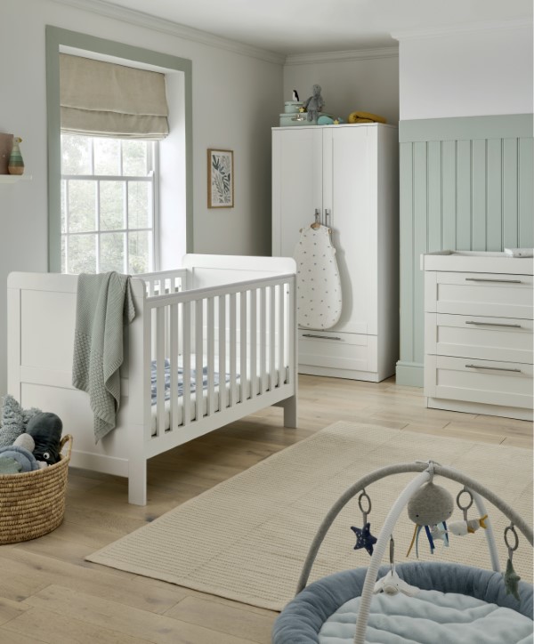A Hampden 3 részes bútorcsomag – Fehér színben – tökéletes választás stílusos és funkcionális babaszobákhoz. Acsomag tartalmaz egy átalakítható babaágyat, egy sokoldalú pelenkázó komódot és egy tágas szekrényt. Letisztult vonalvezetése és semleges színe harmonikusan illik minden enteriőrbe. A praktikus kialakítás éveken át elkíséri gyermekedet. Tökéletes választás modern és nyugodt babaszobákba egyaránt.