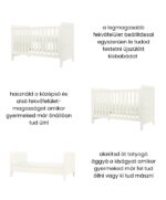 A Mamas & Papas saját tervezésű Hampden bútorcsaládját letisztult, minimalista forma jellemzi, amely tökéletesen illeszkedik bármilyen stílusú babaszobába. A kollekció semleges színei és határozott vonalvezetése lehetővé teszi, hogy könnyedén kombináld kedvenc babaszobai kiegészítőiddel. Ez az átalakítható babaágy a Hampden kollekció jellegzetes, letisztult stílusában készült, elegáns árnyalatban. Ez a finom, semleges tónus harmonikus és megnyugtató légkört teremt, amely jól illik különféle lakberendezési stílusokhoz. Az ágy újszülött kortól kisgyermekkorig elkíséri gyermekedet: könnyedén átalakítható totyogó ággyá, így körülbelül 4 éves korig használható. Háromféle magasságba állítható fekvőfelülete gondoskodik arról, hogy a kisbabád mindig biztonságban legyen, akár még csak fekszik, akár már élénken mozog.