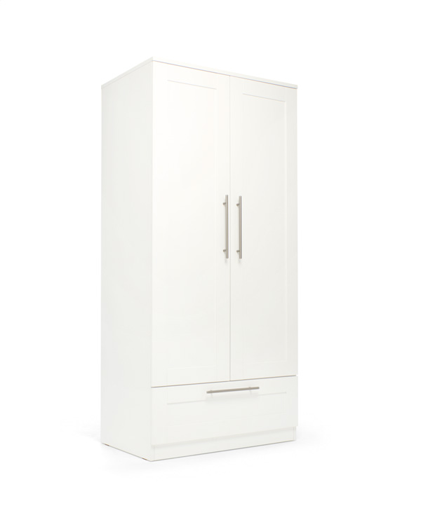A Hampden szekrény – Fehér egy stílusos és tágas tárolóbútor, amely letisztult megjelenésével és praktikus belső kialakításával hosszú távon is ideális választás a babaszobába. A kivehető akasztósínnek köszönhetően a szekrény a gyermek növekedésével együtt is jól kihasználható.