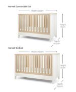 Kisbabád békésen szenderülhet álomba a Harwell átalakítható kiságyban. Tökéletes választás kisebb helyiségekbe is, helytakarékos kialakítása kompaktabb, mint egy hagyományos kiságy, mégis biztosítja a nyugodt alváshoz szükséges kényelmet és teret. A 3 különböző magasságban állítható fekvőfelületnek köszönhetően lépést tarthatsz babád fejlődésével, és a kiságy egyszerűen átalakítható kisgyermekággyá – extra alkatrészek tárolása nélkül. A kéttónusú fehér-tölgy színkombináció pedig minden babaszobában remekül mutat.
