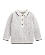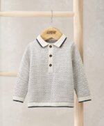 Ez a 100% pamutból készült hosszúujjú jacquard kötött póló ideális a mindennapokra. Klasszikus gallérral és elülső gombos záródással készült, bordázott mandzsettái és alsó szegélye pedig kényelmes illeszkedést biztosítanak a kisgyermek számára.