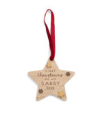 Ünnepeld meg ezt a különleges családi mérföldkövet a „First Christmas as My Daddy 2025” feliratú, csillag alakú fából készült karácsonyi díszítéssel! Finom lézergravírozott betűkkel és arany színű 3D részletekkel díszített, szívhez szóló emlék, amely megörökíti az első közös ünnepi szezon varázsát.